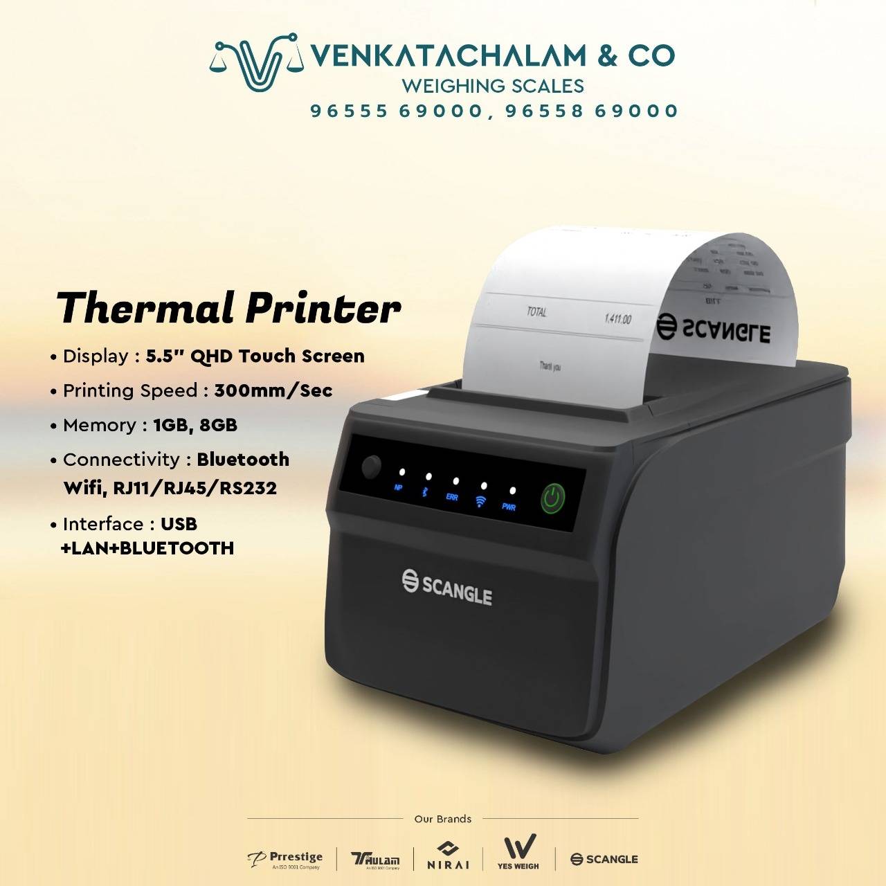 SCANGLE'S THERMAL RECEIPT PRINTER with high quality printing & low working sounds. Easy to operate and high practicability. Printing speed: 300 mm /sec